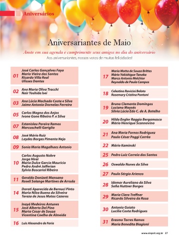 Aniversariantes de Maio