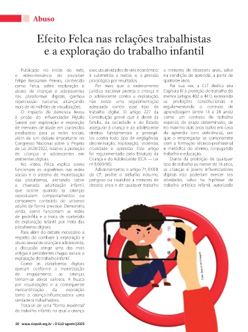 como Felca, sobre exploração e Por mais que o ordenamento Por sua vez, a CLT dedica seu