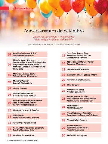 Aniversariantes de Setembro
