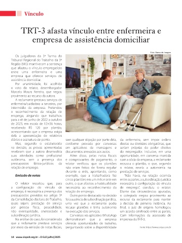 TRT-3 afasta vínculo entre enfermeira e