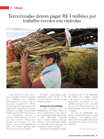 serviços para vinícolas da Serra Gaúcha. Bahia, encontravam-se em situação No caso de trabalhadores que