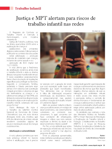 trabalho infantil, sobretudo em suas em ambiente digital”. crianças e adolescentes e ratifi car que