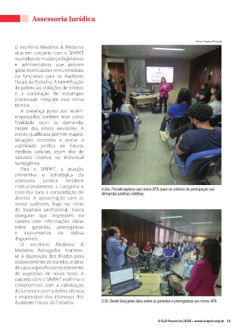institucionalmente a categoria e A Dra. Priscilla explicou aos novos AFTs quais os critérios de participação nas