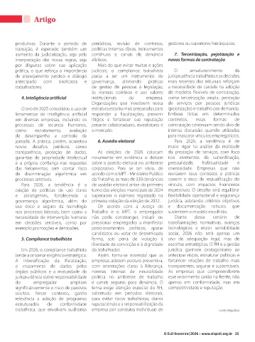 aumento da judicialização, seja pela contínuos e canais de denúncia 7. Terceirização, pejotização e